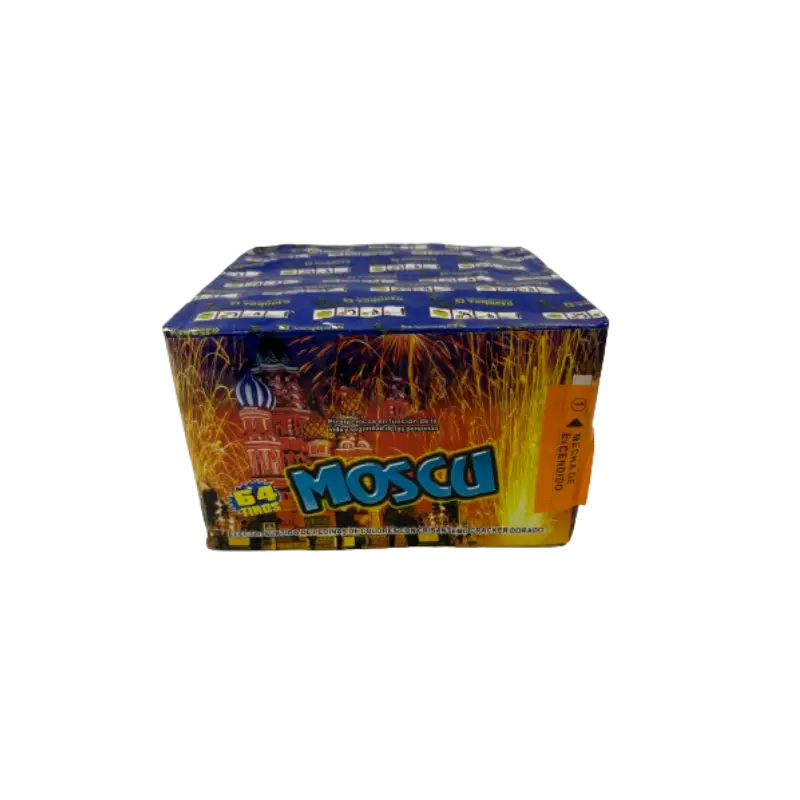 La Torta Moscú de 64 tiros es la opción ideal para quienes buscan un espectáculo pirotécnico aéreo de alto impacto. Diseñada para eventos al aire libre, esta torta combina potentes efectos cracker con explosiones multicolor que iluminan el cielo y capturan la atención de todos los asistentes. Perfecta para celebraciones masivas, bodas, ferias, eventos empresariales o festividades especiales. ¡Un solo encendido y el show comienza!