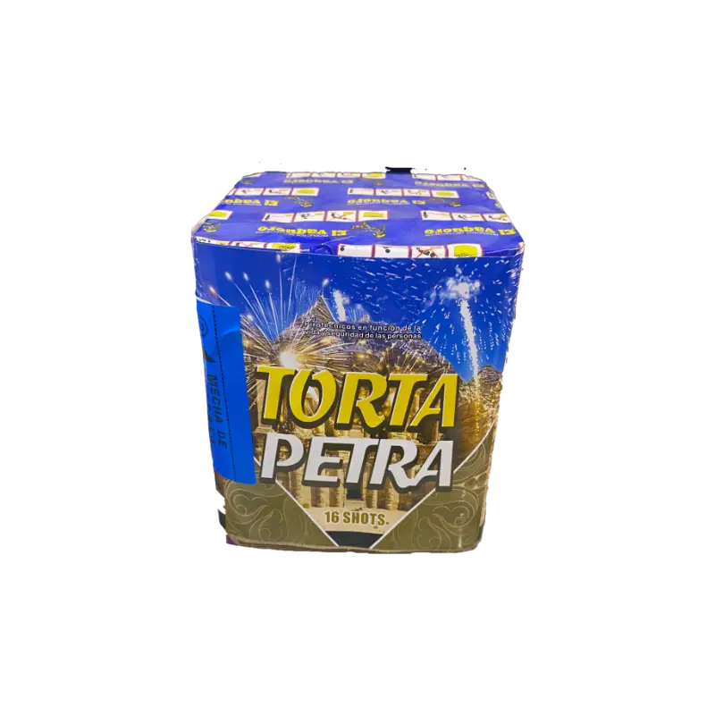 Compra ahora la Torta Petra de 16 tiros, solo en Pirotécnicos Medellín. Producto autorizado para mayores de edad, ideal para celebraciones seguras, coloridas y sin ruido.